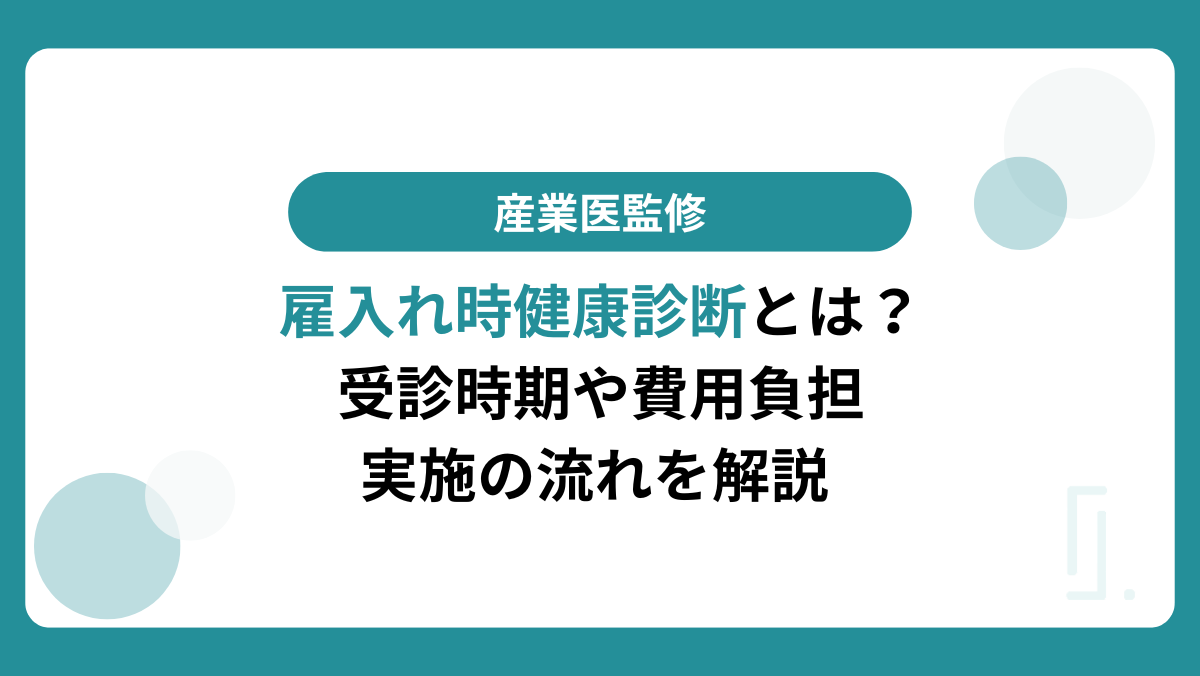 【産業医監修】雇入れ時健康診断とは?受診時期や費用負担・実施の流れを解説 | oneself.